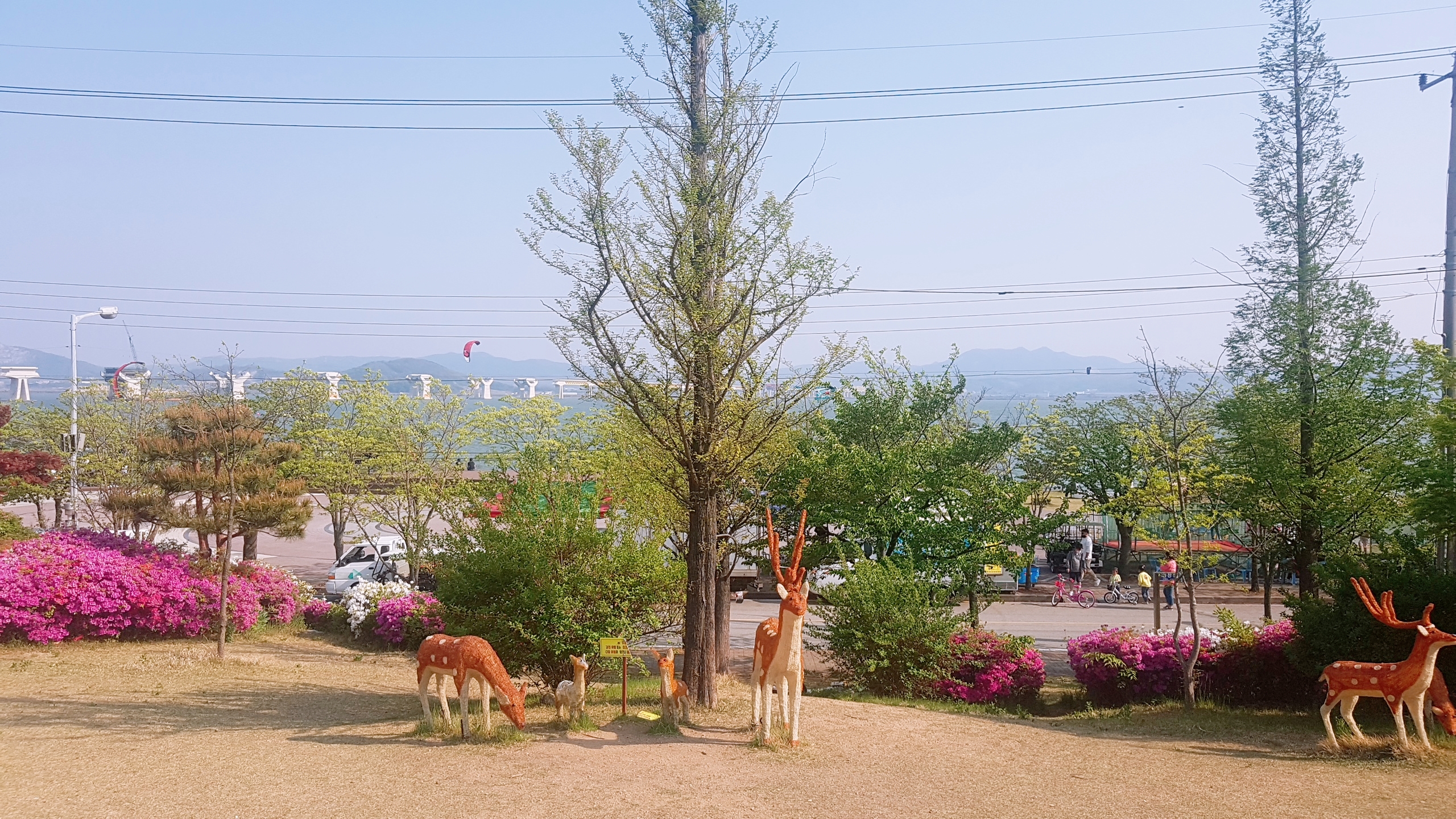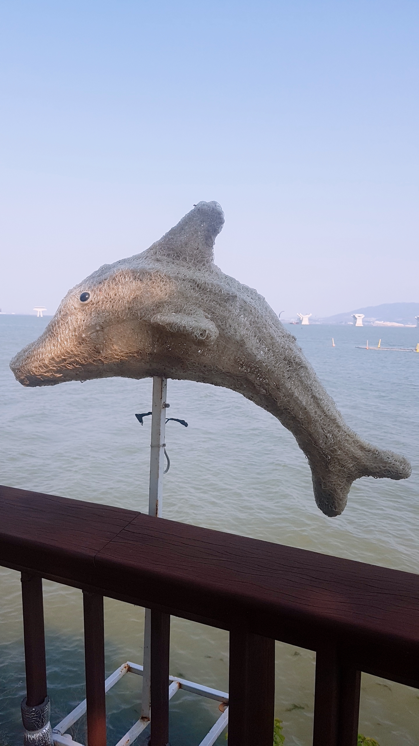 산책로 외곽에 귀엽게 생긴 돌고래 조형물이 있길래 한번 사진을 찍어봤습니다.