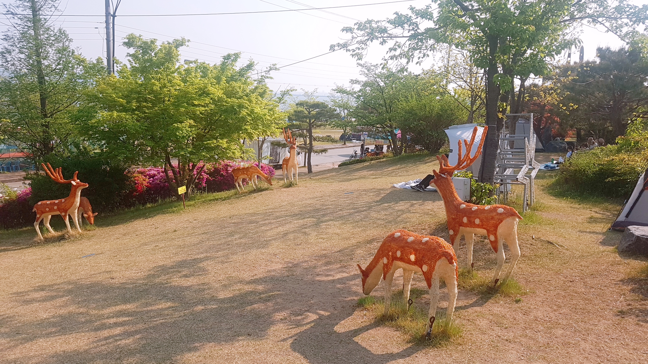 실제로 살아있는 사슴은 아니고 다 모형 사슴입니다.