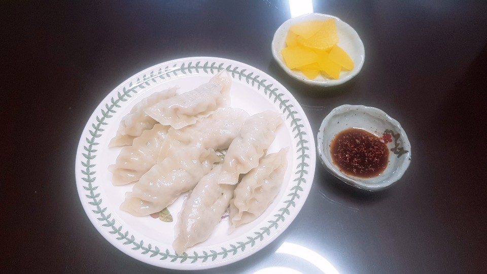 에브리데이 국민가격 왕교자와 간장 그리고 단무지의 환상적인 컬래버레이션입니다.