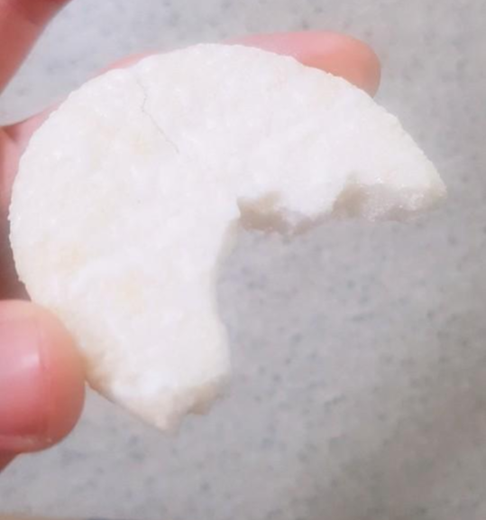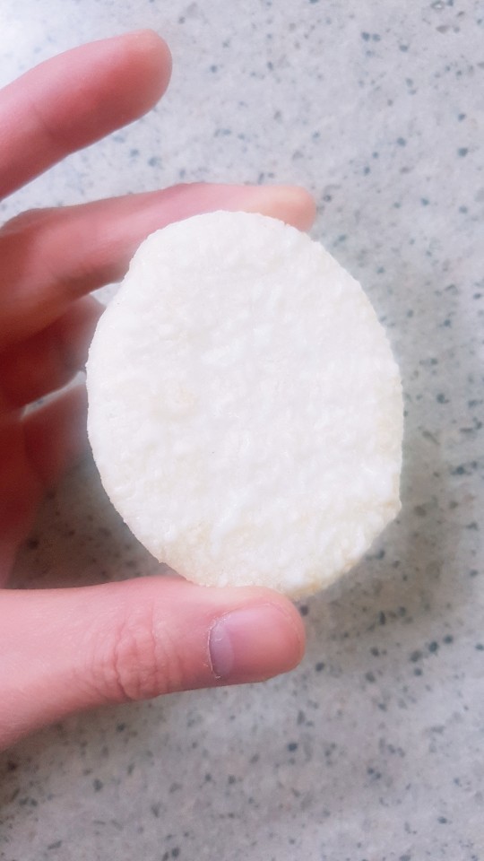 노브랜드 쌀과자의 포장을 벗기고 한 개를 꺼내봤습니다.